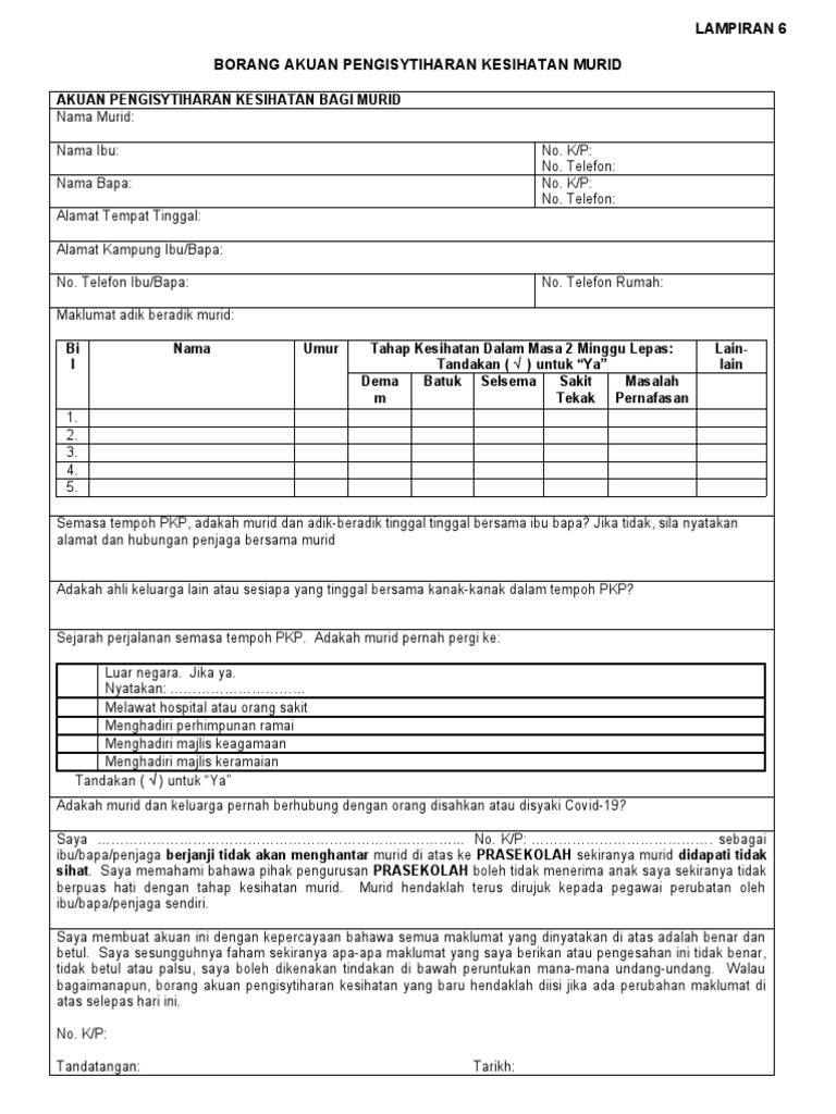 Lampiran 6 Isytihar Kesihatan Murid Docx