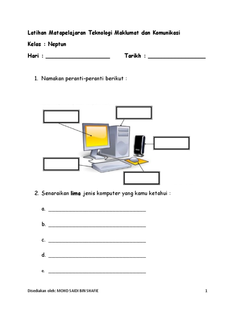 Sk Telok Pulai Taman Bertek Klang Ujian Pentaksiran 1 Teknologi Maklumat Dan Komunikasi Tahun 6 Masa 1 Jam Nama Personalized Items Person