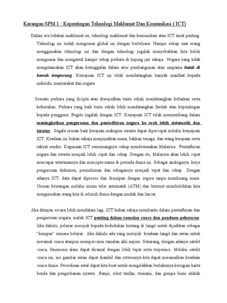 Teknologi Maklumat Dan Komunikasi Karangan Spm